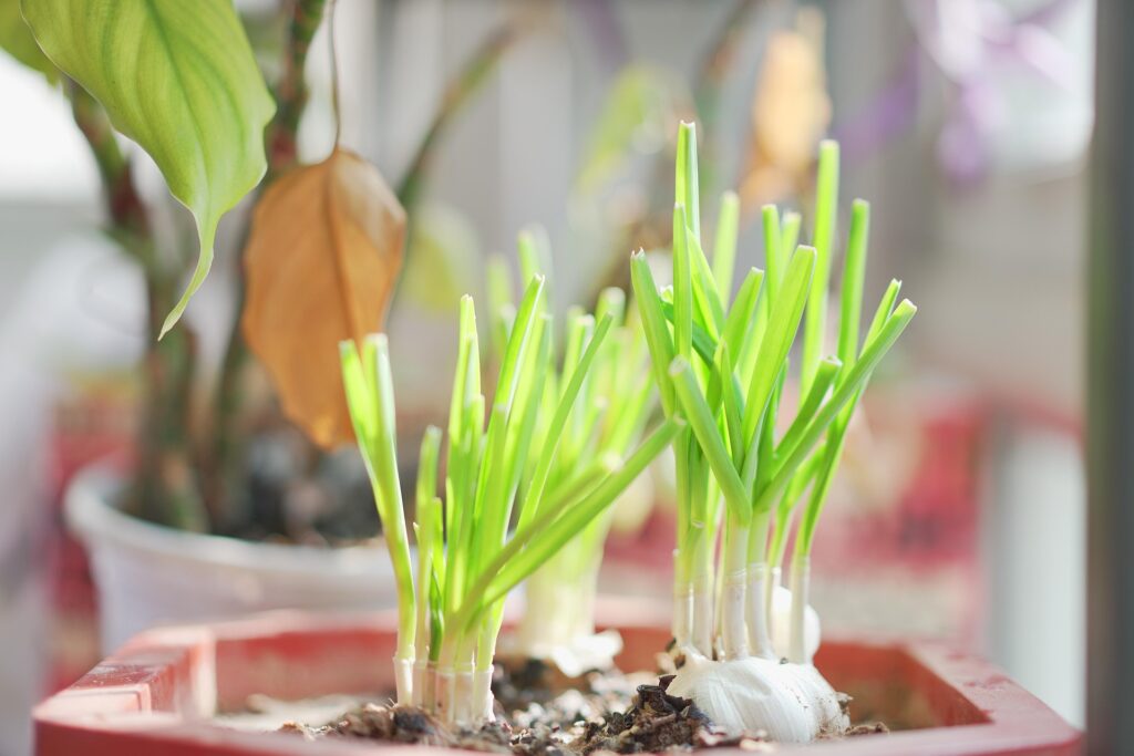 If you’re short on space, grow garlic in containers on your balcony or windowsill (just make sure they get enough sun).