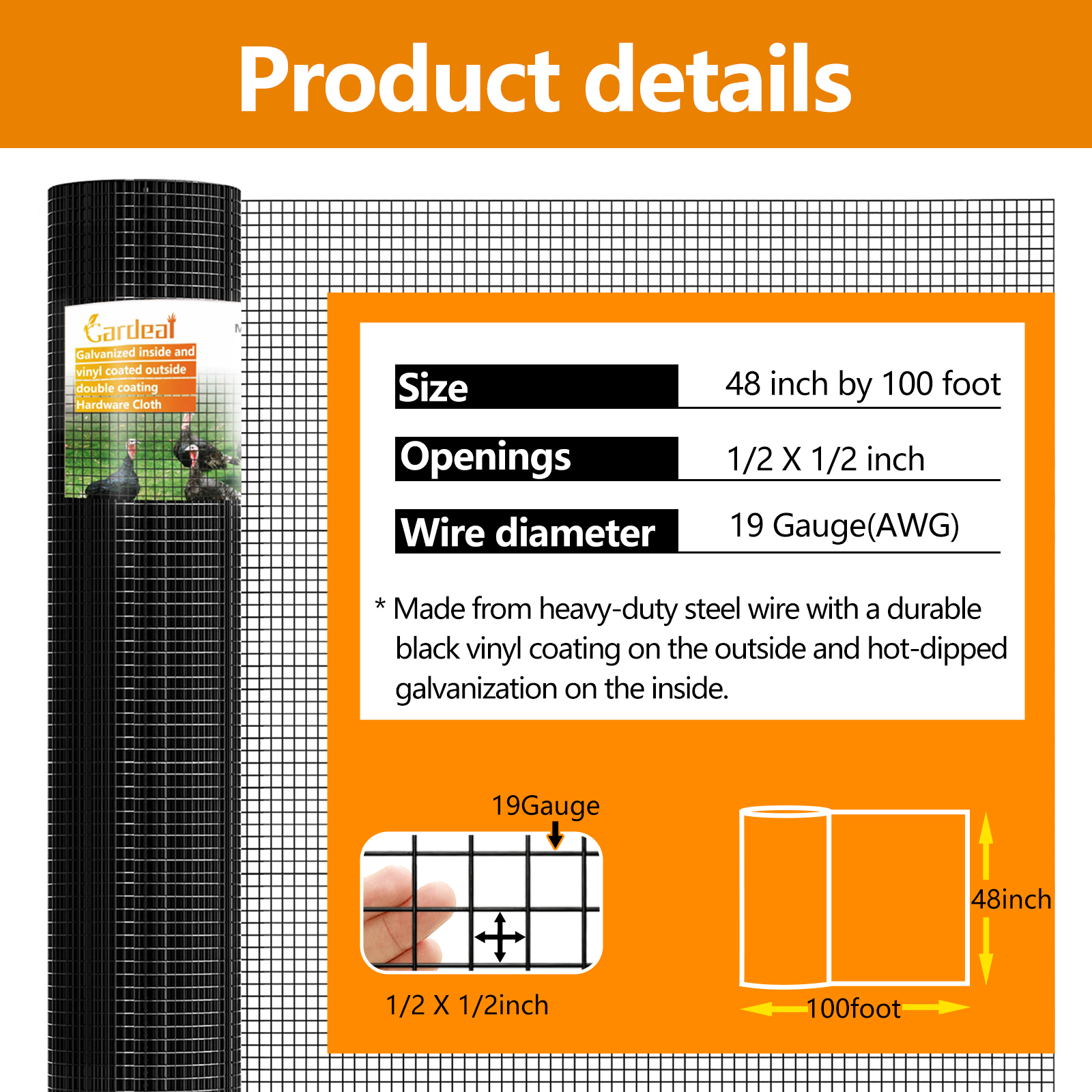 - Multifunctional use:Hardware cloth is suitable for chicken pen/coop fences, raised garden beds, screen mesh, rabbit/snake fences, tree guards, gutters, under eaves, soil sifters, gutter guards, flower beds, poultry enclosures, home decoration projects, handicraft making, etc. You can turn it into anything you want. But please note that whether its size and mesh size are what you need. If the sizes are not suitable, please go to the gardear store and choose them again.